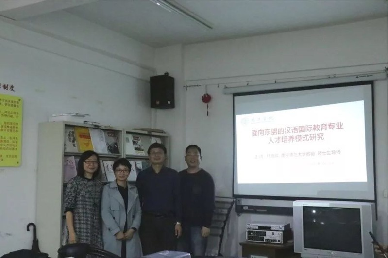为推进学校汉语国际教育专业发展与汉硕点申报,4月19日下午,69书吧 、汉语国际教育研究所邀请南宁师范大学国际教育学院的副院长杨绪明教授莅校,在学院会议室讲座“面向东盟的汉语国际教育专业人才培养模式研究”,并就汉语国际教育硕士专业学位点申报进行座谈。讲座与座谈由李义海教授主持。