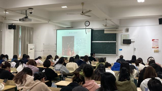 赖老师在讲授之余,还不忘鼓励69书吧 历史系同学们努力学习专业知识,积极提高学术水平,同时对同学们考取福建师范大学研究生表示热烈欢迎,充分表现了师大闽院两校情谊。