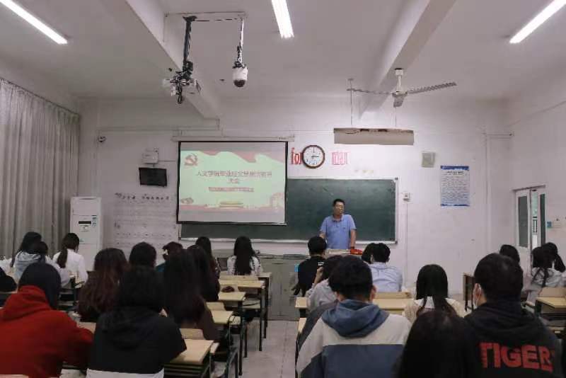 侯杰为毕业班党员们带来了毕业前最后一节“思政课”。他从共产党人的初心与使命、习近平总书记在庆祝中国共产主义青年团成立100周年大会上对青年的寄语、未来的职业道路怎么走等方面,详细阐明了作为一名党员应该怎样保持自身先进性、纯洁性,树立良好榜样,之后从三个方面讲述并寄予了自己的期望:第一,希望毕业班党员们做到坚定理想信念,加强政治修养;第二,希望大家在今后树立廉洁意识,筑牢“底线”思维;第三,希望同学们勇于担当作为,发挥模范作用。