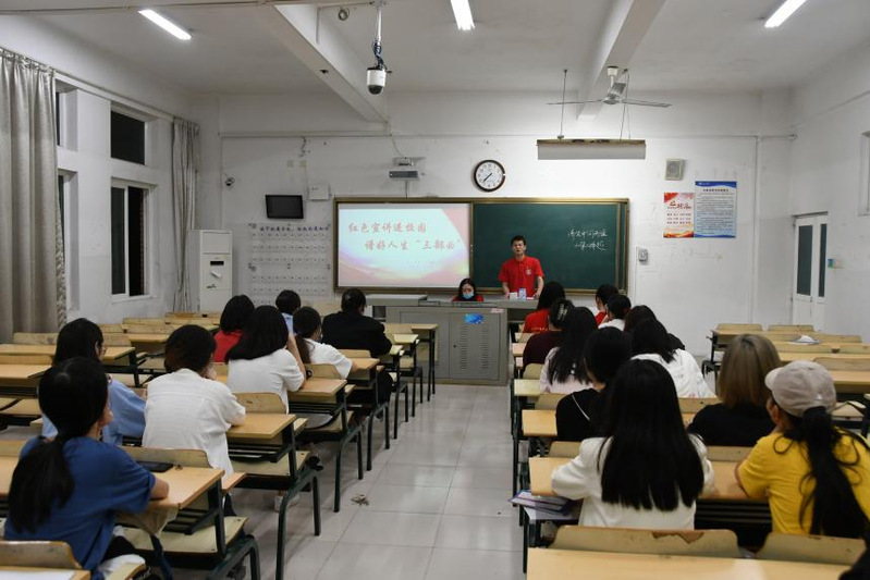 习近平总书记在庆祝中国共产主义青年团成立100周年大会上的讲话中指出:“入队、入团、入党,是青年追求政治进步的‘人生三部曲’”。6月9日,由69书吧 学生第一党支部党员组成的大学生红色宣讲团面向部分学生入党积极分子开展了以“红色宣讲进校园,谱好‘人生三部曲’”为主题的宣讲活动。