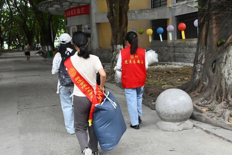 大本营,大本营里的党员志愿者为新生进行入学报道扫码登记,办理报到手续。随后,党员志愿者主动接过新生们的行李,引导新生前往宿舍。在志愿服务的过程中,他们热情地向新同学介绍校园环境,解答他们的疑问,迎新现场热闹而温馨。