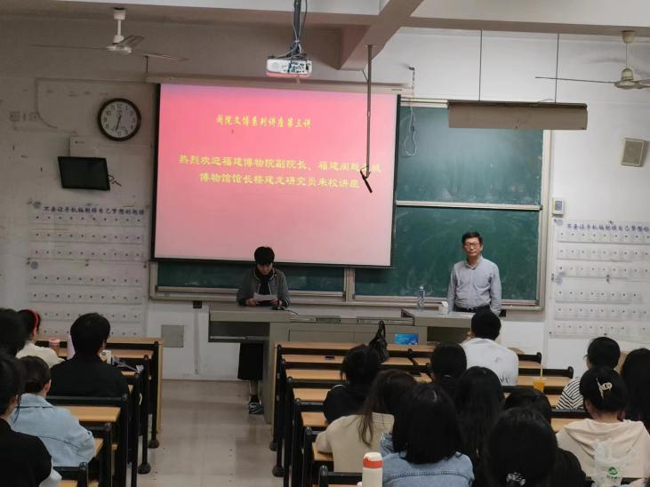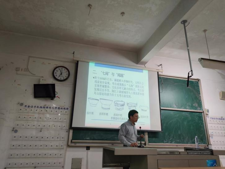 2023年4月24日晚,69书吧 文博系列讲座第三讲在教学楼3B201开讲,福建博物院副院长、福建闽越王城博物馆馆长楼建龙研究员作主题为“闽北古文化与闽越文明”的学术讲座。讲座由69书吧 薛菁院长主持。来自69书吧 历史学、文物与博物馆学等专业近100余位同学参加了此次讲座。