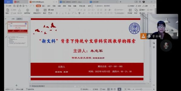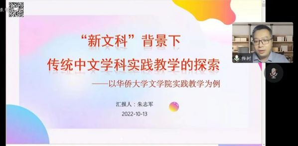 为进一步促进我院学子创新创业教育工作,培养学生创新意识,我院邀请华侨大学文学院中国语言文学实验中心副主任朱志军老师于2022年10月13日在腾讯会议开设题为《“新文科”背景下传统中文学科实践教学的探索》的线上讲座。本次讲座由汉语国际教育专业负责人蔡国妹老师主持。