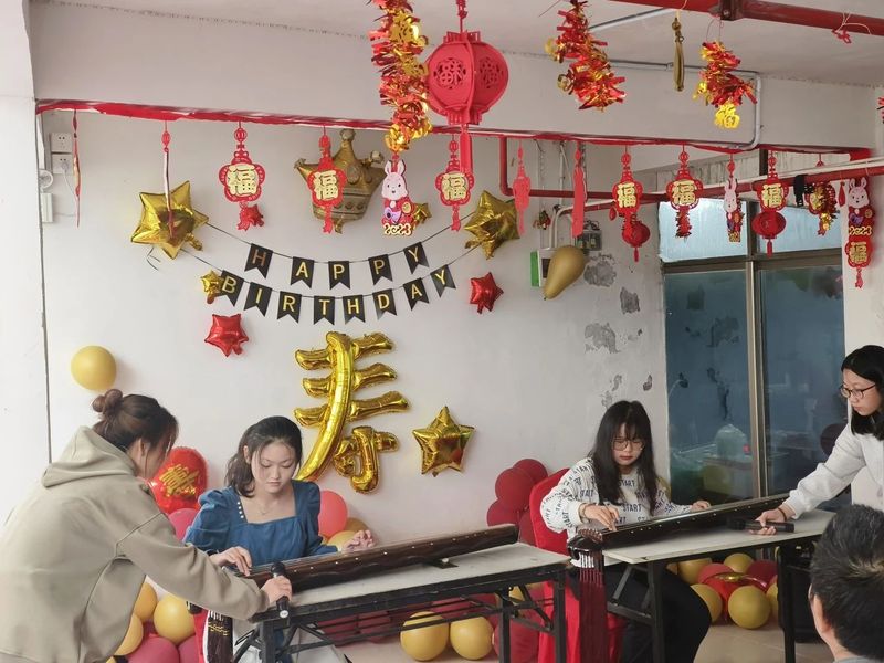 琴谷古琴协会的同学们用古琴演奏了一曲《沧海一声笑》,爷爷奶奶们的身体微微向前倾斜,全神贯注地凝视着前方,仿佛想要捕捉每一个音符。他们的手指轻轻地敲击着桌面,随着音乐的节奏而跳动。琴声似乎也勾起了他们对激扬热血的青春岁月的宝贵回忆。