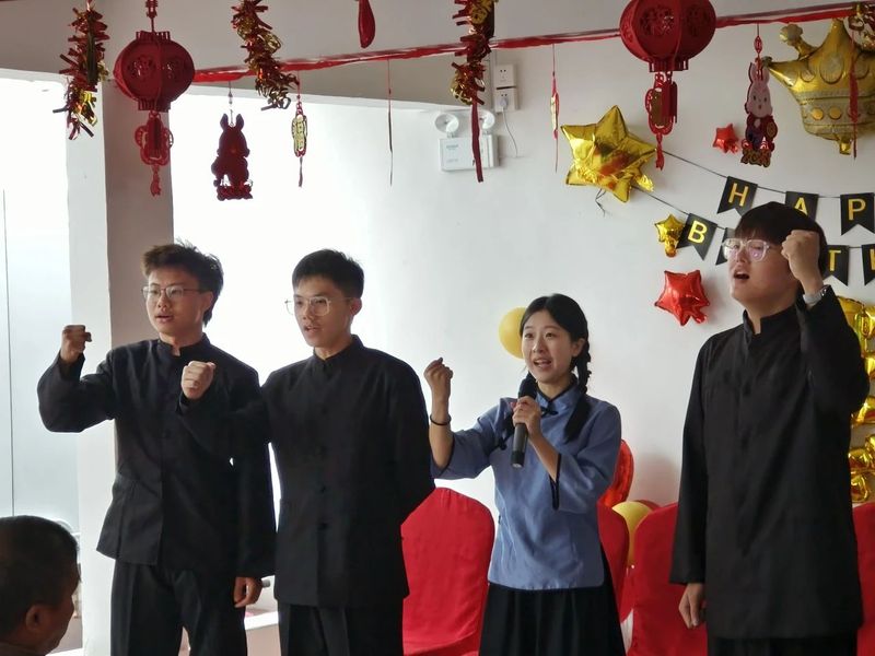 文艺演出从激昂热烈的歌曲《好运来》开始,戏曲社的同学们用歌声传递对爷爷奶奶们的美好祝福,祝愿他们的晚年生活天天都有好运。
