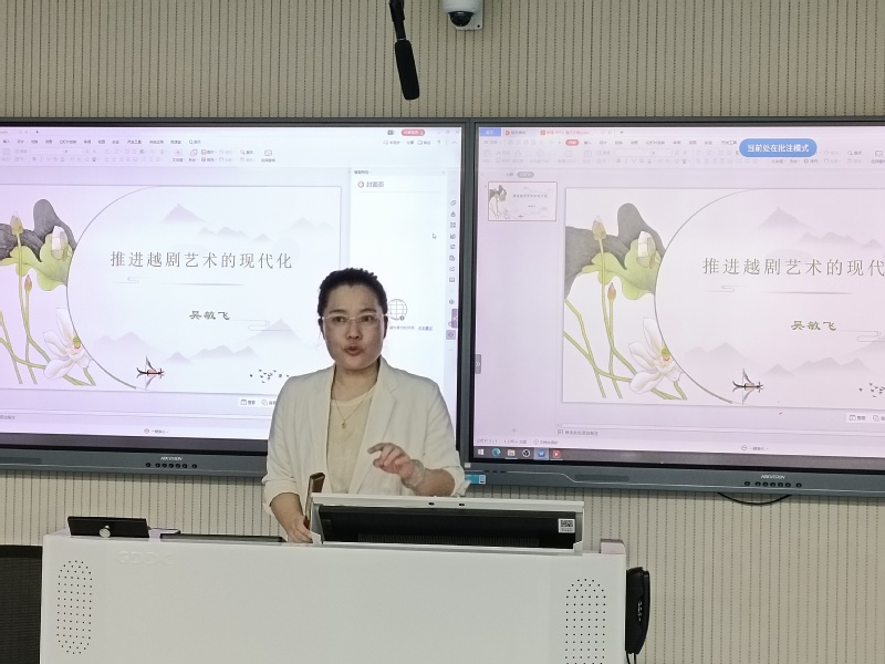 为重拾戏曲艺术精神,传承戏曲文化精粹,保护中华优秀传统文化,2023年11月6日,69书吧 邀请芳华越剧院吴敏飞老师莅校为我院师生作“推进越剧艺术的现代化”的主题讲座。