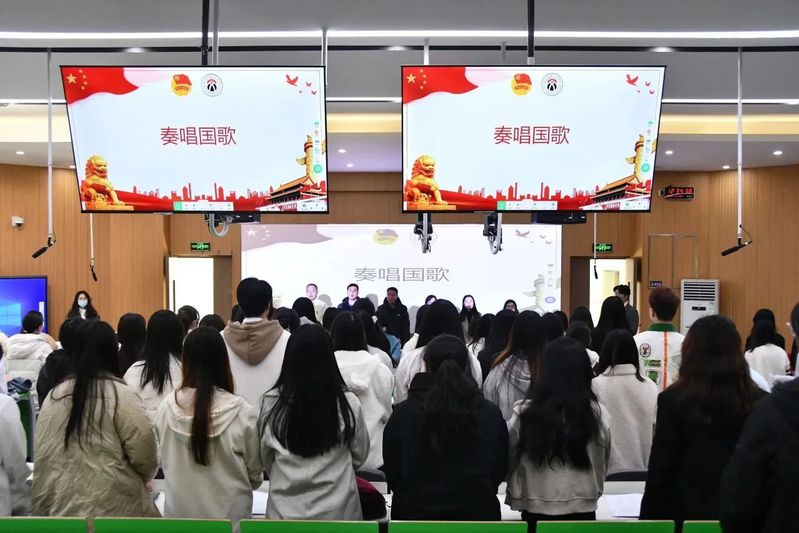 大会在庄严的国歌中拉开序幕。