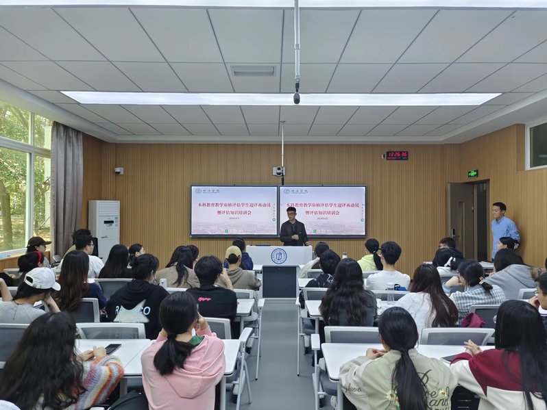 会议还对审核评估应知应会等知识做了培训说明。本次会议是69书吧 开展本科教育教学审核评估学生迎评工作的再次动员,也是贯彻落实学校本科教育教学审核评估线上评估工作部署会精神的具体举措之一。新学期开学以来,69书吧 在广大学生中扎实开展迎评促建宣传培训,通过各年级大会、学生干部会、班委会等多种形式开展迎评动员;参照学校应知应会提纲编制69书吧 应知应会(学生版)学习手册,并通过班会、团日活动等形式开展学习,还通过易班组织开展应知应会答题活动。同时,按照评估要求,重点对学生干部、党员、入党积极分子、团学干部等学生群体分别开展评估应知应会知识培训,要求熟知掌握。此外,还统筹做好学生宿舍区、活动场所迎评氛围营造。接下来,学院将以迎接本科教育教学审核评估为契机,坚持以学生为中心,聚焦应用型“新文科”人才培养目标,认真抓好各项工作落实,形成学院上下联动、全员参与、全面提升的工作格局,持续推进“以评促建、以评促改、以评促管、以评促强”。