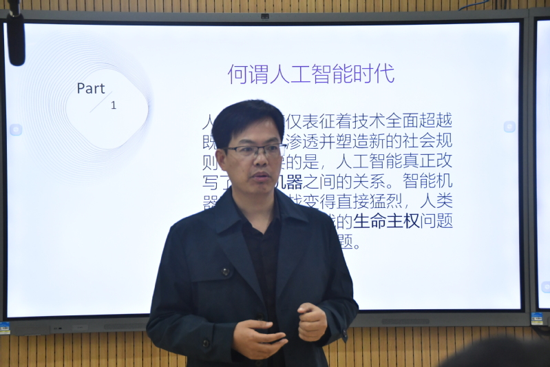 讲座有深度、有广度、有延展度,将前沿的重大问题与现实思考、人生经验、美学案例、诗歌品鉴等有机地结合起来,非常具有开拓性、批评力、创造性与启发性,引发了在座师生的共情与热烈反响。最后,陈开晟教授以分享心得的方式进行总结,他在新的危机与挑战中指出文学的合法性与作为,他呼吁在座的文学爱好者在人工智能时代重新打开心灵的空间,疏通文学经脉,锻炼好美学筋骨,勉励中文人要为新人文、后文学、大文学时代的到来而做好准备。
