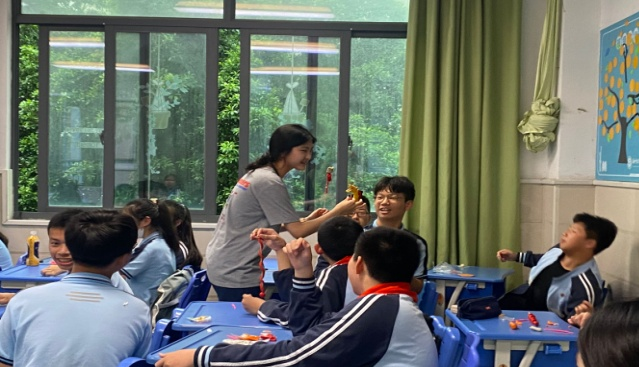 4月26日,两名汉语国际教育2021级学生叶可灵和杨楚妮,在刘敬老师的带领下前往福州市教院附中,为初一班学生“福建地方文学”校本课程开展了一堂创意十足的“中国龙文化”主题面塑才艺课。