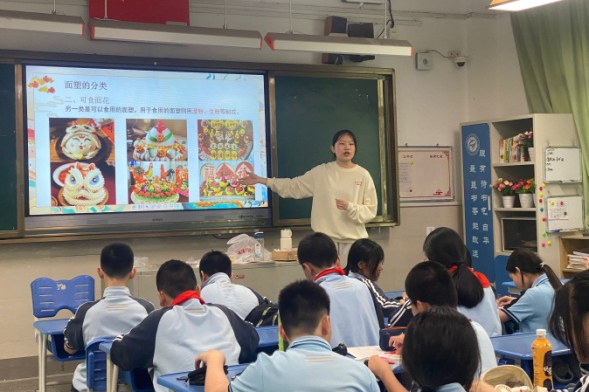在课堂上,两位小老师为同学们介绍了面塑的历史、面塑的分类以及面塑的详细制作过程,同时还为同学们精心准备了面塑材料和制作工具,并设计了许多有趣的课堂小游戏和互动环节,让孩子们在互动中了解面塑的相关知识。