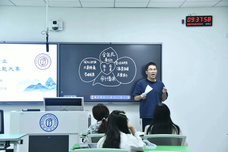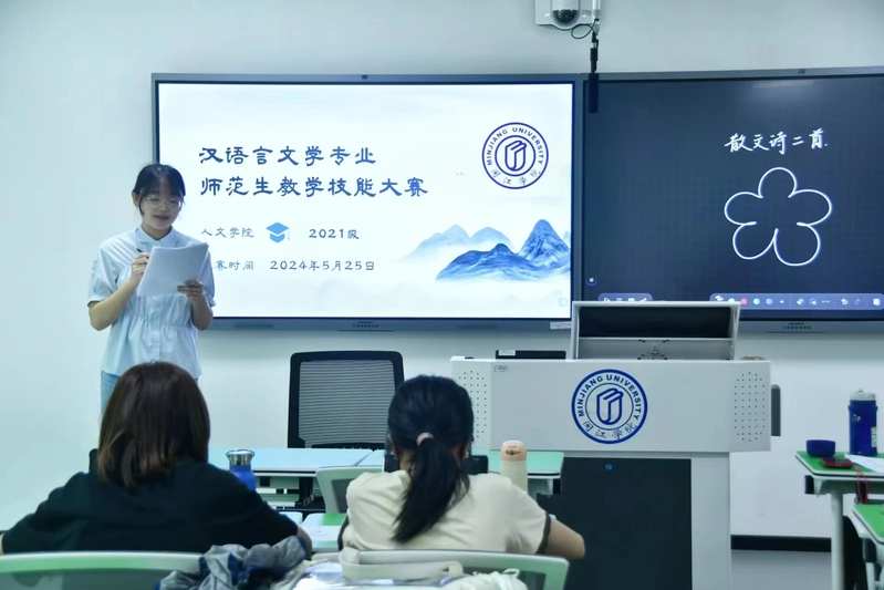 为进一步提升我院汉语言文学师范专业毕业生教学技能水平和就业竞争能力,夯实学生教学基础,展示学生的教案设计能力,激发学生对课堂教学方法的探索热情,5月25日,2021级汉语言文学师范生教师技能大赛在3A204、3A206、3A211顺利举办。本次大赛由郑笠、刘洪祥、秦榕、陈毓文、林娟、陈秋婷担任评委老师,共有18名师范生参赛。