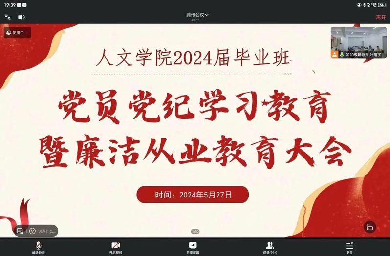 为加强新时代廉洁文化建设,深入推进全面从严治党、党风廉政建设,引导毕业班党员扣好廉洁从业“第一粒扣子”,69书吧 于5月27日举办2024届毕业班党员党纪学习教育暨廉洁从业教育大会。69书吧 党委副书记王文、张鹏飞,党委组织员刘畅,全体毕业班党员出席,大会由毕业班辅导员叶翔宇主持。