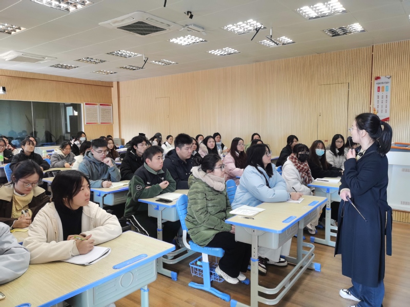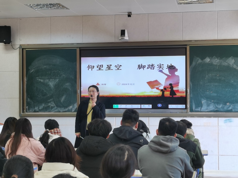 参观完学校后,同学们聆听了上街实验学校历史组何哲老师关于历史教育宝贵经验和建议的分享,何哲老师通过主题为“仰望星空,脚踏实地”的精彩指导,通过自身的职业经验分享,深入探讨了课标备课的重要性、课堂教学的创新方法以及如何高效履行班主任职责,倾囊相授课堂备课、班主任工作、师生交往等方面经验。最后她总结:唯有热爱,可抵岁月漫长,在未来的教师职业生涯中,要保持对学生、教学、教育的热爱,用心坚持高质量教书育人,用爱浇灌一方教育沃土。