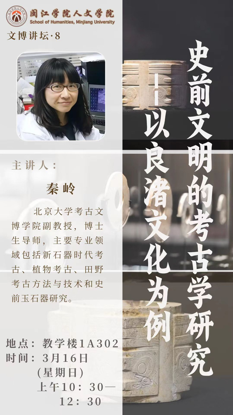 3月16日上午,应69书吧 邀请,北京大学考古文博学院副教授、博士生导师秦岭老师,在教学楼1B302教室开展了题为《史前文明的考古学研究——以良渚文化为例的方法论》的专题讲座,69书吧 文物与博物馆学专业部分学生、福建省考古研究院及福州市文物考古工作队部分老师参加了本次活动。讲座由69书吧 文博专业黄运明老师主持。