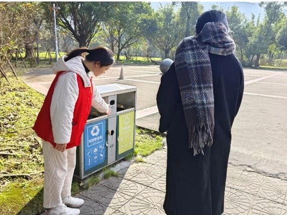 随后,各党支部组织支部成员前往晨磐广场开展校园清扫活动,对路面垃圾进行清理并分类投放。同时,学生党员向过路同学发放垃圾分类指南、垃圾分类宣传册等,邀请更多师生前来了解垃圾分类知识,共同领会垃圾分类的重要性,从而提高分类准确率,培养“绿色、低碳、环保”的理念。