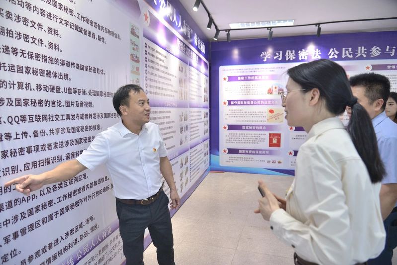 活动现场,张建安认真观看了新《保密法》相关宣传教育内容和“保密须知”,仔细参观了校园保密原创文学作品展览及由百余名学生参与制作的 “百密图”、保密主题剪纸作品、非遗漆扇等,聆听了保密红色故事,充分肯定了此次“保密宣传教育+传统文化”的活动形式与内容。张建安指出,在数字化时代,泄密隐患无处不在,要加强全校师生的保密宣传教育,不断丰富宣传教育形式,让全校师生严守保密之纪,紧绷保密之弦,勇担保密之责。