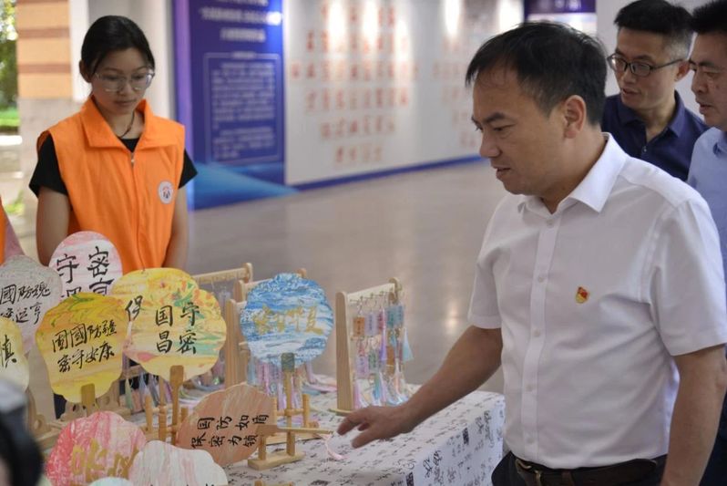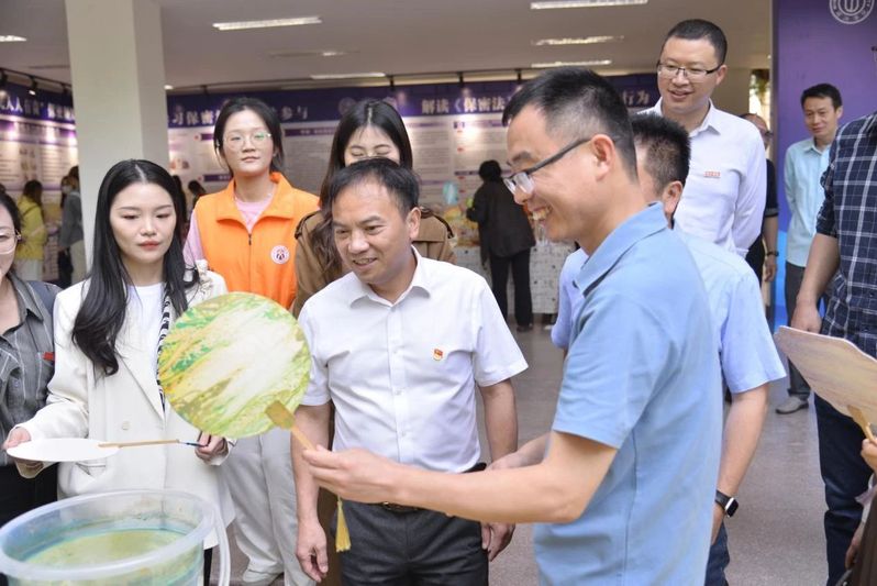 活动现场,张建安认真观看了新《保密法》相关宣传教育内容和“保密须知”,仔细参观了校园保密原创文学作品展览及由百余名学生参与制作的 “百密图”、保密主题剪纸作品、非遗漆扇等,聆听了保密红色故事,充分肯定了此次“保密宣传教育+传统文化”的活动形式与内容。张建安指出,在数字化时代,泄密隐患无处不在,要加强全校师生的保密宣传教育,不断丰富宣传教育形式,让全校师生严守保密之纪,紧绷保密之弦,勇担保密之责。