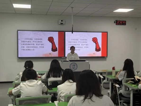 活动伊始,殷可天同学深入阐述作风建设的内涵与重要性。结合实际情况,她剖析了同学们在作风和纪律方面存在的不足,并详细解读了纪律规矩的核心要点。为让大家更直观理解,殷可天同学列举了苏区时期“三大纪律八项注意”的诞生及谷文昌同志的先进事迹。这些鲜活案例充分证明,加强作风建设、严守纪律规矩是推动事业发展、赢得人民信任的关键,激励大家以先进典型为标杆,加强自我修养,践行党的宗旨。