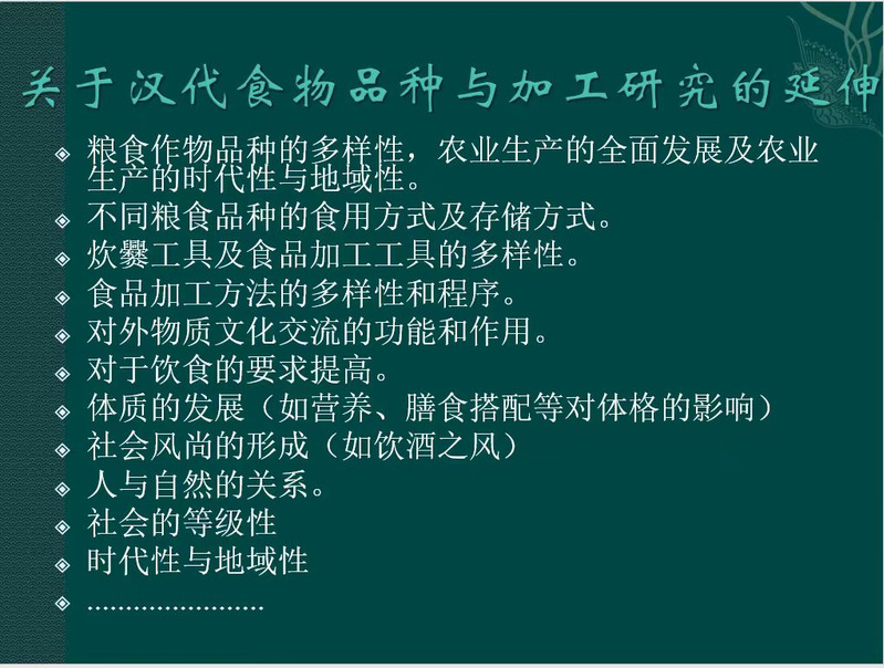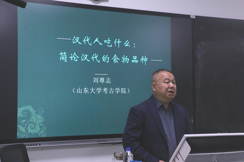 讲座伊始,刘尊志教授简要介绍了汉代的社会历史背景,指出饮食已经是汉代社会生活考古研究不可忽视的内容,是当下需要重视的问题。围绕汉代人的饮食,刘教授将讲授内容分为八个部分——粮食、蔬菜、水果、饲养动物、捕猎动物、调味品、乳制品及茶和食方,结合考古资料,全方位地向大家展示汉代的饮食生活。