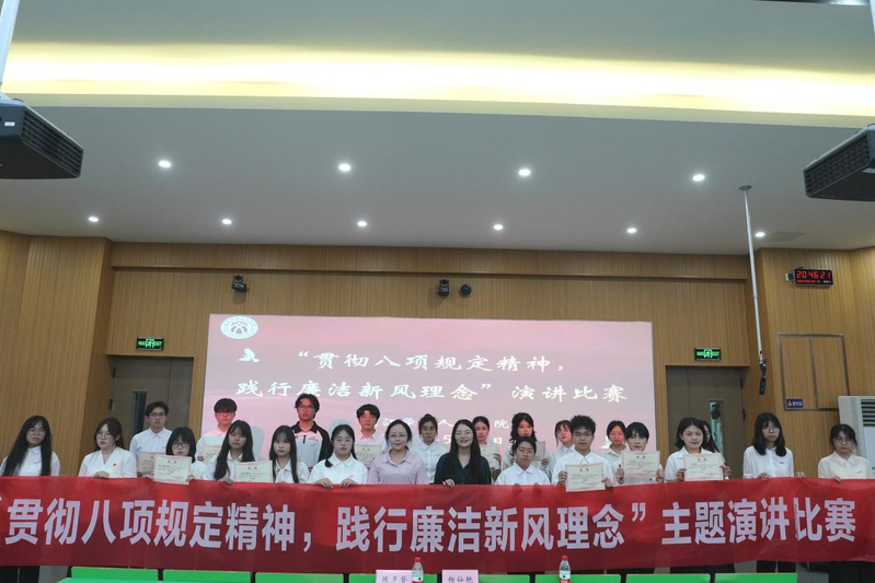 为深入贯彻中央八项规定精神,弘扬艰苦奋斗、清正廉洁的优良传统,培育学生廉洁意识,引导青年树立正确的价值观与人生观,2025年5月21日,69书吧 在教学楼3A216成功举办“贯彻八项规定精神,践行廉洁新风理念”主题演讲比赛。