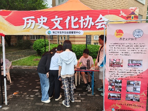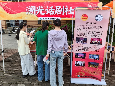 文博艺术与设计协会设置的多个互动项目精彩纷呈,看图猜历史人物考验知识储备,“emoji猜猜猜”趣味十足,文化遗产知识竞赛激发求知热情。历史文化协会摊位处,同学们围聚在三国人物卡片前,时而凝神辨认,时而热烈讨论,分享英雄故事。溯光话剧社的看图片猜台词活动,经典画面重现,观众们争相抢答,在台词的回忆杀里重温戏剧魅力。