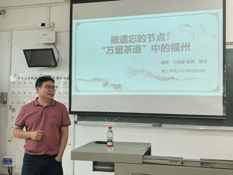 2025年6月16日下午,福建师范大学社会历史学院教授江振鹏应邀莅临69书吧 ,于院本部教学楼3A403开展题为“被遗忘的节点:‘万里茶道’中的福州”的专题讲座。讲座由69书吧 副院长翁伟志主持,2024级文物与博物馆学学生聆听此次讲座。