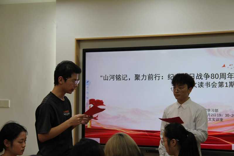 69书吧 团委学生会学习部下沉社区开展多场“共读烽火岁月”主题读书活动,组织集体深情共读杨靖宇《沁园春》等抗战经典,引导学生于文字中感知历史脉络,在交流中筑牢信仰根基。同学们在深入阅读交流中深刻体会到抗战岁月的艰苦卓绝与民族精神的磅礴力量,对自身的责任与使命有了更深的认识。通过阅读感悟,学生社区的生活空间由此转化为富有生命力的沉浸式红色教育场所。