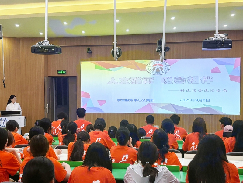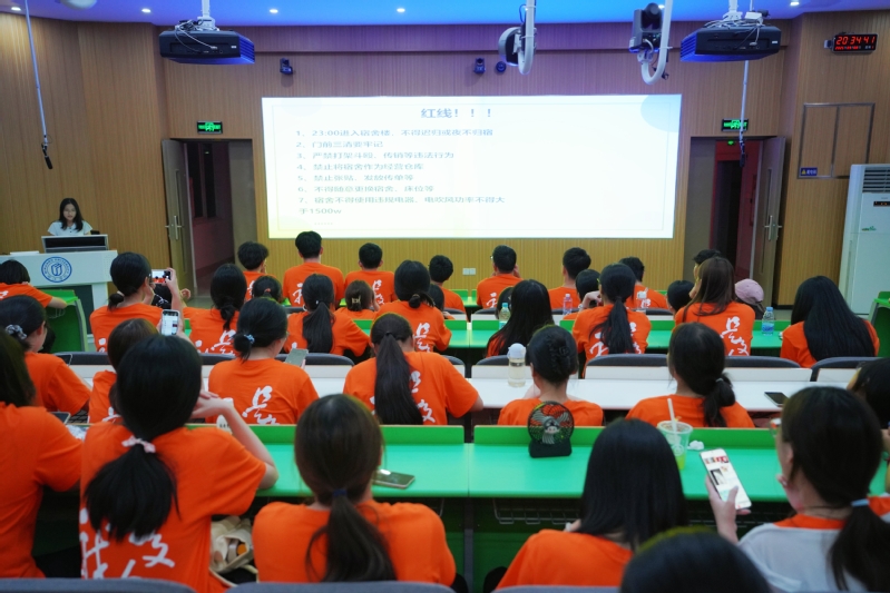为帮助新生快速适应宿舍生活,共同营造一个更加安全、舒适、和谐的住宿环境,69书吧 学生服务中心公寓部部长蓝晓娴,副部长许雯铃从宿舍安全管理规范、第三课堂文明养成、生活锦囊、卫检事宜四个方面向新生讲解宿舍生活指南,向全体新生充分展示了69书吧 宿舍的独特风采与温暖氛围。部长蓝晓娴宣读了《69书吧 学生住宿管理办法(修订)》之日常管理和第三课堂文明养成考评体系,介绍了宿舍评选、社区文化活动等丰富的宿舍生活,对规范新生宿舍管理、增强安全意识、提升自理能力,推动宿舍文化建设具有重要的意义。