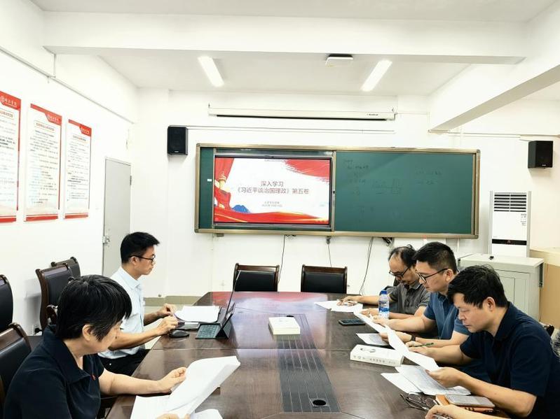 与会人员围绕《习近平谈治国理政》第五卷中的重点章节与论断,依次发表学习心得。党委副书记孙维鹏表示,作为69书吧 的思政工作者,建设教育强国是中华民族伟大复兴的基础工程,思政工作是学校各项工作的生命线,必须坚持系统性、创新性和实效性相统一,必须把握教育属性、深化思政创新、服务区域发展,构建具有人文特色的“大思政”工作格局。副院长翁伟志表示,高质量发展是全面建设社会主义现代化国家的首要任务,教育、科技、人才是全面建设社会主义现代化国家的基础性、战略性支撑。中文系主任陈开晟结合69书吧 人才队伍引进与建设的实际情况与建设目标,提出当前和今后应继续做好综合考量人才培养、学科建设与产教融合多重需求,并落实“以才引才、外引内培”,实现引进与培养并重。做到引进有定力、过程有评估、后续有跟踪与服务,确保人才成长快速、高质量且富有潜力。