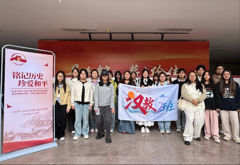 为深切缅怀抗战先烈、弘扬伟大抗战精神、传承红色基因、赓续红色血脉,10月22日,2023级汉语国际教育2班团支部于教学楼连廊参加了“铭记历史、珍爱和平——纪念中国人民抗日战争暨世界反法西斯战争胜利80周年”档案主题宣传活动。