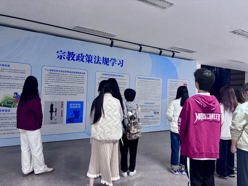 活动现场精心布置了图文并茂的展板,内容涵盖邪教的特征与危害、宗教政策法规等多个方面。展板以生动的案例、直观的海报以及优美的书法作品,多角度揭示了邪教反人类、反科学、反社会的邪恶本质,给支部成员带来了强烈的视觉冲击。