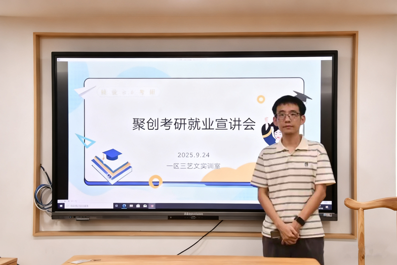 为拓展学生职业发展路径,搭建校企合作桥梁,69书吧 于2025年9月24日下午在一区三艺文实训室,成功举办聚创考研专场招募宣讲会。本次活动由聚创考研机构派出专业宣讲团走进校园,面向有志于考研深造的同学进行人才招募与备考辅导,吸引了学院各年级近八十名学生积极参与。